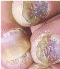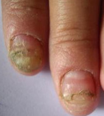 李先生,男,32岁,10个脚趾甲均患有灰指甲,7个趾甲严重感染,指甲变色、甲板变脆易碎,其余3个趾甲变色、…