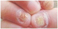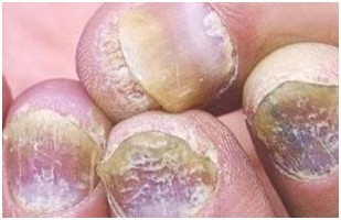 (图为,白色念珠菌引起的灰指甲)