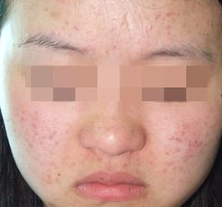 4. 螨虫性皮炎:患者皮肤变粗糙,有脱皮现象。在夜间面部会有瘙痒感。面部多油,毛孔变粗大,鼻周毛孔有黑头并增多。青春痘反复发作,鼻上痤疮反复发作,毛血管扩张,皮肤开始增生性肥厚,呈“橘皮状”红肿。前胸、后背生出红色小疙瘩。还出现断发、头发分叉,头皮屑增多等等。