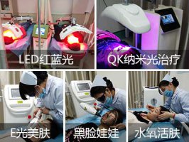 3、细胞修复:视个人肤质,选择LED-红蓝光治疗仪、QK纳米光治疗、E光美容仪、黑脸娃娃等设备,修复受损细胞。